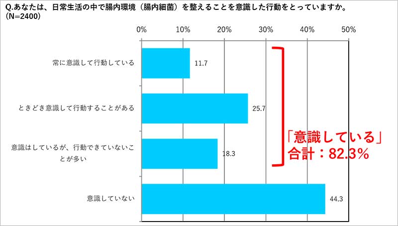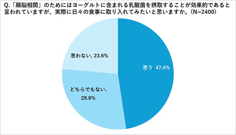 「みんなのヨーグルトアカデミー」は、環境の変化が大きく、ストレスやプレッシャーを抱え、心身のバランスを崩しやすい春の新生活シーズンに着目し、生活者はヨーグルトを食べているのか、腸内環境ケアについてどう捉えているのかといった実態を明らかにするべく、20~40代の男女2400人に向けてアンケートで調査。