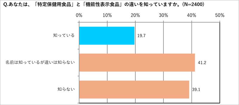 ◆「特定保健用食品(トクホ)と機能性表示食品の違いを知っている人」は19.7%と2割にも満たないが、