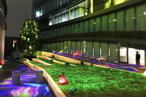 ここは東京・六本木。 ボートレース BOATRACE振興会の本社機能やスタジオ、カフェ、庭園などが組み合わされた憩いの場「SIX WAKE ROPPONGI」の夜。 いまここで、心地よいサウンドと光のアートでリトリートで…